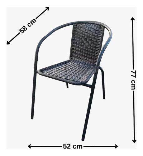 Set 4 Sillas Jardin Metal Negra Y Plástico Símil Ratan Negro Rayas